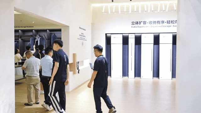 展馆内人潮如织,Supeni 苏柏瑞 五金展馆以「橱柜收纳五金 × 衣柜收纳五金 × 基础五金系统 」三大核心展区,参观者沿动线逐一感受 Supeni 苏柏瑞 全屋五金高阶品质。
