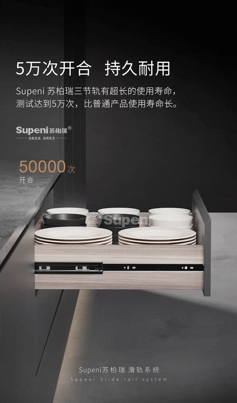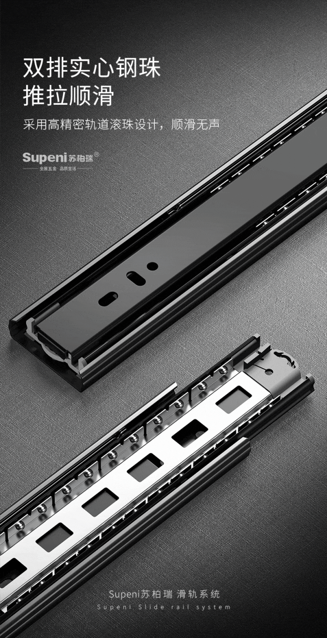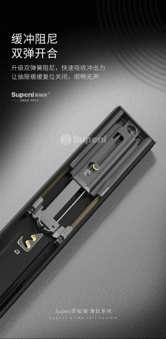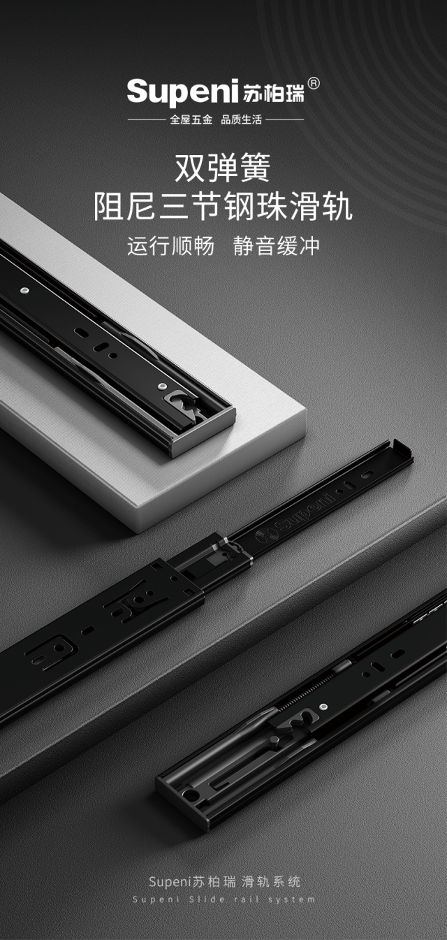运行顺畅 静音缓冲 | Supeni 苏柏瑞 · 双弹簧阻尼三节钢珠滑轨荣耀上市