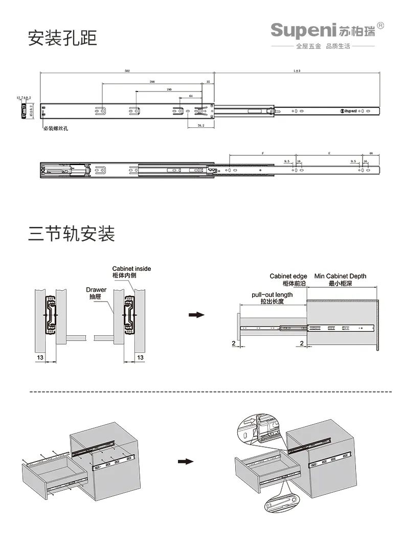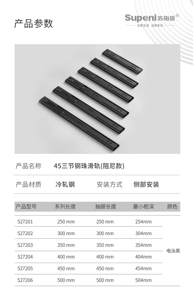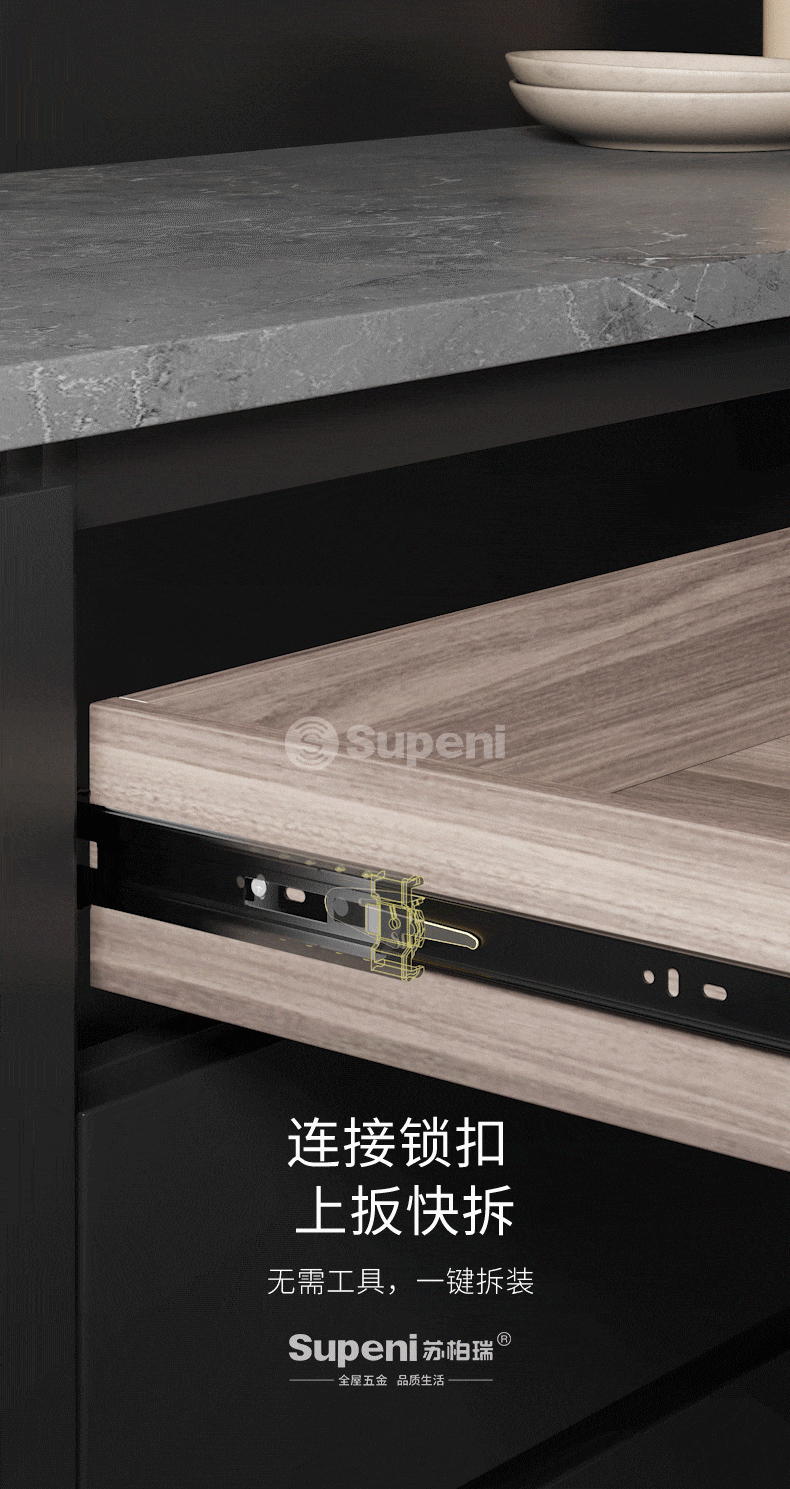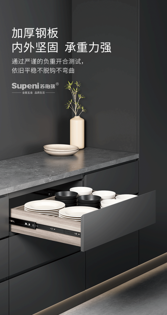 运行顺畅 静音缓冲 | Supeni 苏柏瑞 · 双弹簧阻尼三节钢珠滑轨荣耀上市